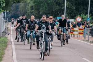 Vegan country! Your bicycles don't scare me.Bikers on their way to Graspop.